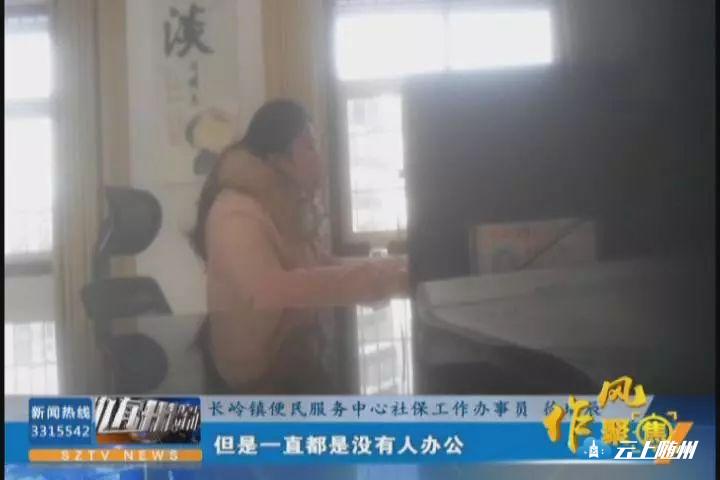 在曾都区北郊办事处的便民服务中心,暗访组发现,这里也只有两名人员在办公,其它办事窗口均无人办公。