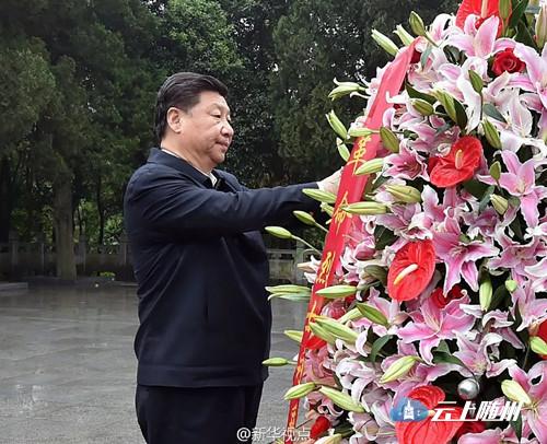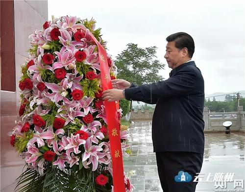 ——2016年4月24日,习近平到安徽考察,前往金寨县向革命烈士纪念塔敬献花篮。