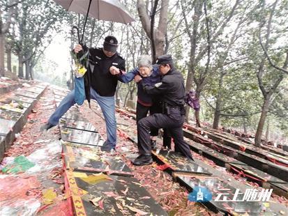 楚天都市报讯(记者余渊)八旬婆婆独自去给父亲扫墓,雨天路滑还摔了一跤,附近执勤民警背着老人爬上了七八十级的台阶,随后又花了两个小时,帮老人找到父亲的墓碑。前日,这暖心一幕发生在汉阳扁担山公墓。