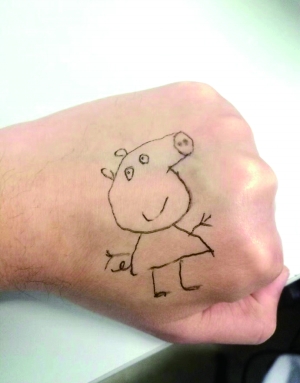 杨磊手上的小猪佩奇图案。图片来源:成都商报