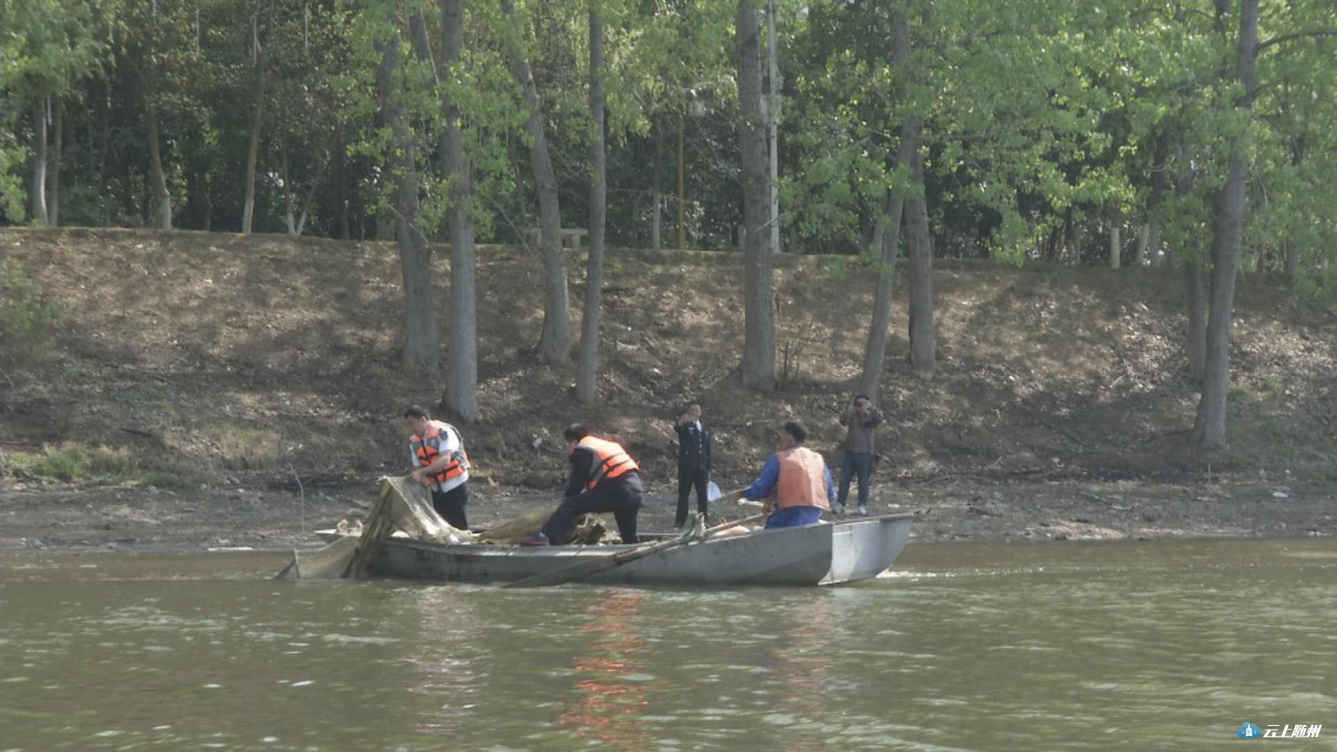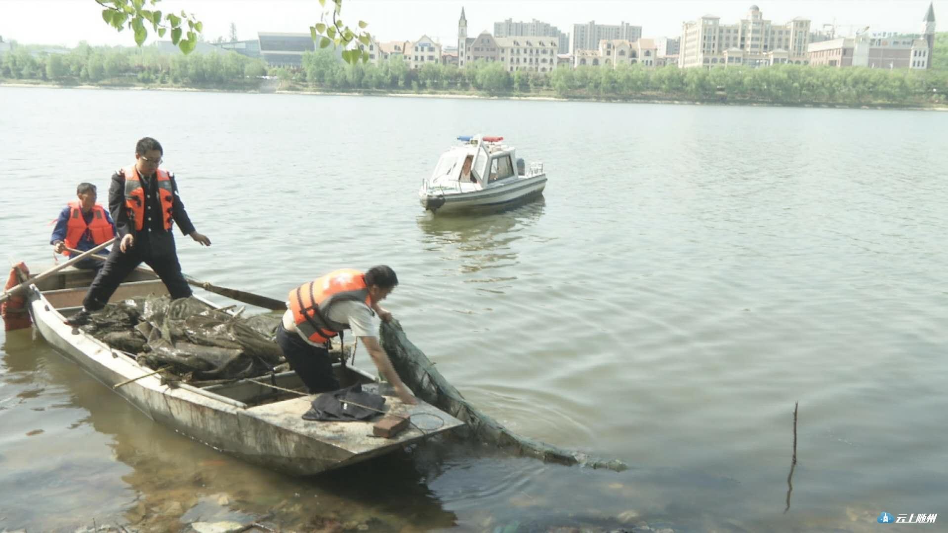 曾都区渔政部门在白云湖开展清网行动