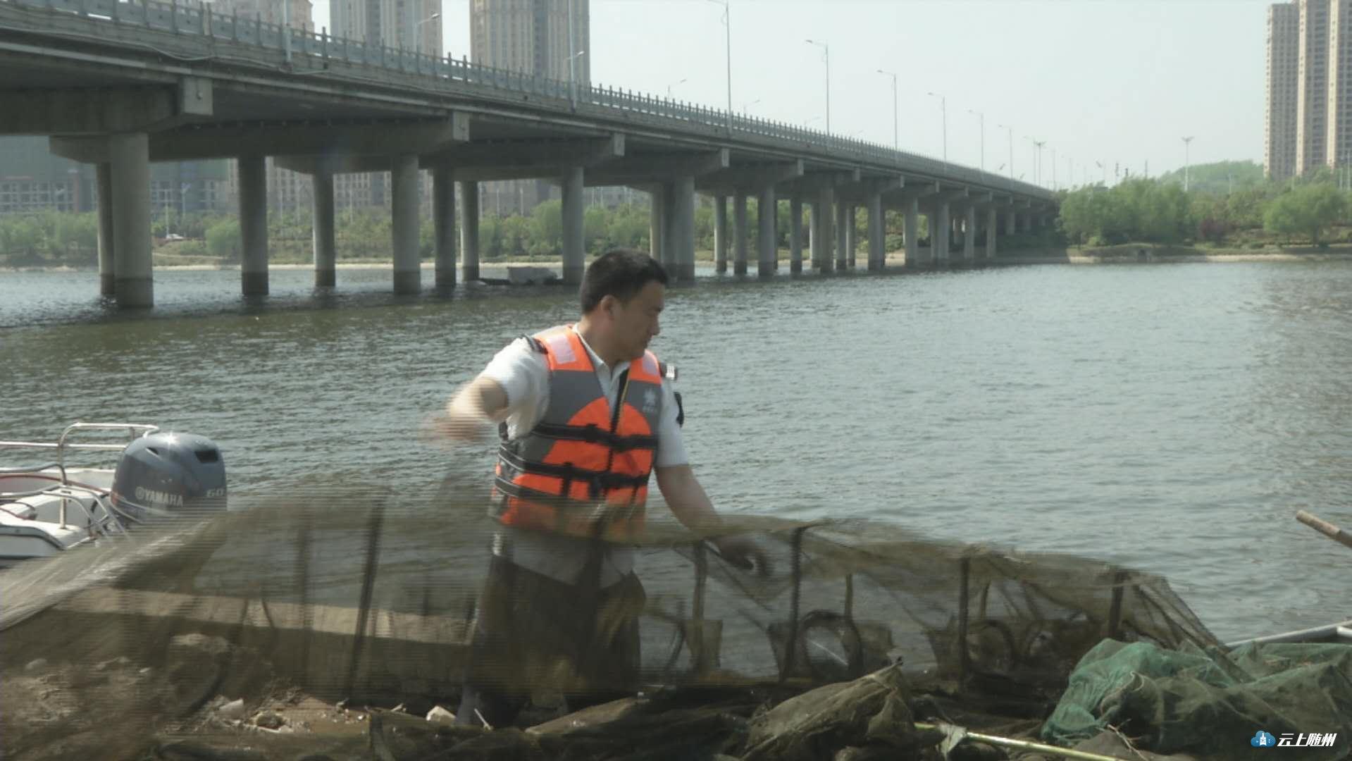 曾都区渔政部门在白云湖开展清网行动,对地笼网等渔具进行清理拆除,保护白云湖渔业资源。