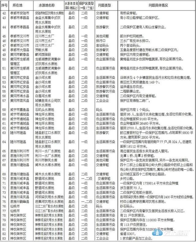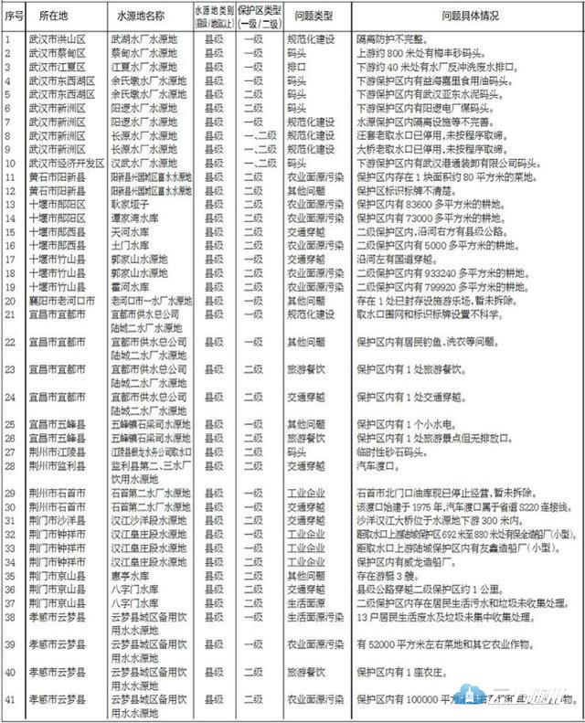 目前,湖北省组织各地已完成了对县级城市集中式饮用水水源地环境保护专项排查工作,建立问题清单。