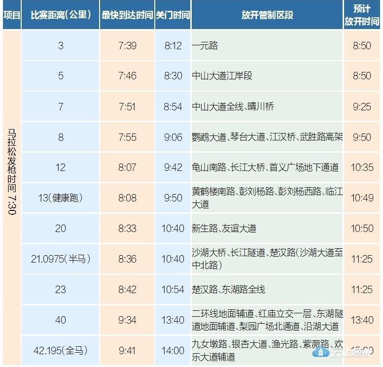 据了解,15日汉马赛事当天,7时 30分至14时,第三届武汉马拉松在汉口江滩江汉门前起跑。交管部门从 14日 14时起至15日下午比赛结束,对部分道路分路段、分时段临时交通限行。根据2017年“汉马”比赛情况,预计沿江大道起点区域 10时放开交通,预计15时赛事全部结束。