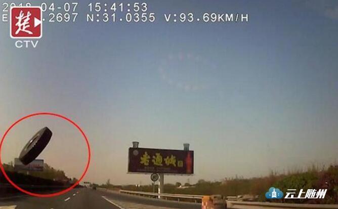 4月7日15时40分左右,胡某(43岁 湖北丹江口人)驾驶的鄂C牌小车行驶至二广高速荆门路段的时候,突然从左前方飞来一只货车轮胎,落地后立即弹起来砸到其车上。轮胎将车的前挡风玻璃左上部砸碎,汽车左部顶棚被砸凹进去。司机胡某头部也被砸得晕晕乎乎。