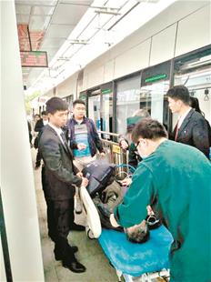 有轨电车管理部门让电车立即原地停车等待救援。随后,有轨电车管理部门迅速与武汉大学人民医院东院区取得联系,请求紧急医疗救助。接到救助电话后,武汉大学人民医院东院区迅速行动,急救人员立即赶往佛祖岭站等候。经紧急协调,本趟“量子号”有轨电车秒变救护车,从当代国际花园站到武汉大学人民医院东院区所在的佛祖岭站,中间6站一站未停,仅花了10分钟左右,就将爹爹送到佛祖岭站。电车一到站,急救人员马上将爹爹抬上担架。
