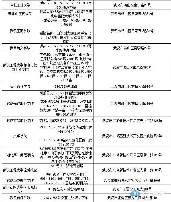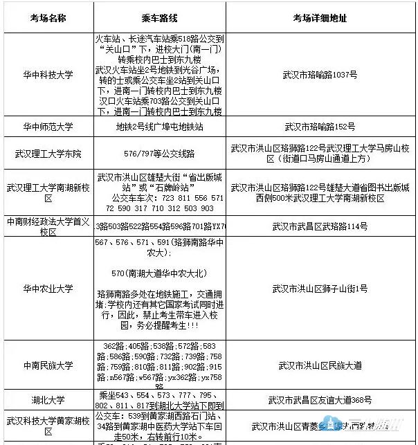 湖北日报特地整理了各考区考点名单以及乘车指南,供大家参考: