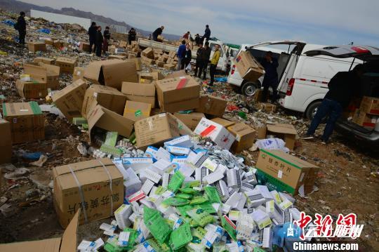 资料图:过期药品堆放在垃圾场,即将销毁。