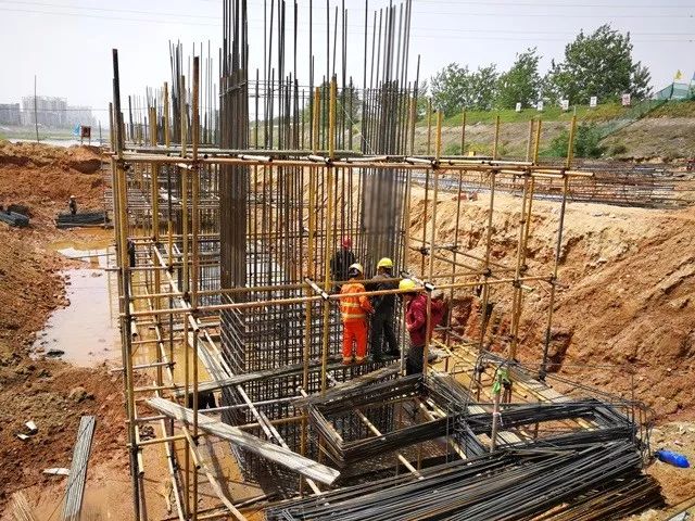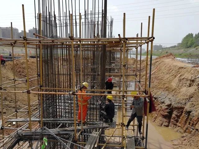 日前,随州日报记者在桃园大桥施工现场看到,㵐水河中的三个桥墩已开始承台和墩柱的建设,预计5月底可完成桥梁下部结构,不影响河道行洪。