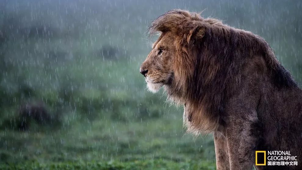 一只非洲狮静待雨停。过去的20年,非洲狮的数量下降了42%。而人类蚕食狮群领地和运动狩猎是其数量减少的主要原因。