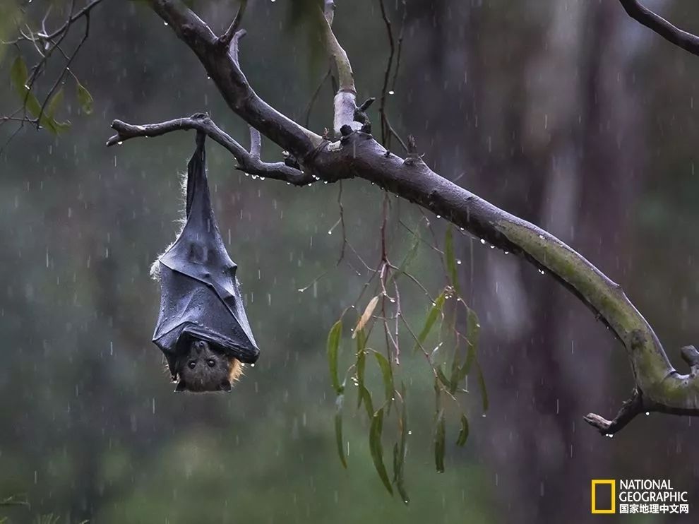 澳大利亚的墨尔本阵雨连绵,一只果蝠倒挂在树上歇息,用翅膀将自己包起来保暖。正如其名,果蝠以水果为食,并且在自然界中扮演着传粉和散播种子的重要角色。