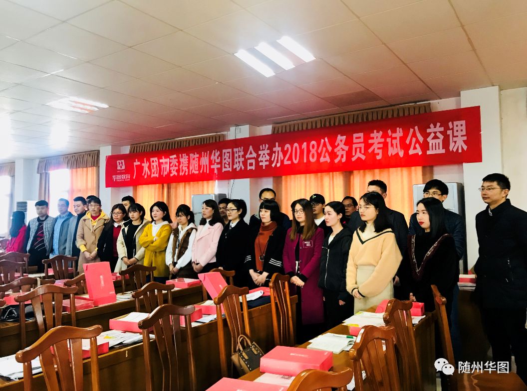 据了解,今年三月份曾都区区团委、随县县团委以及广水市团委均携随州华图联合举办了2018公务员考试公益课,致力于更好地为广大随州考生在此次考试中取得佳绩,促进青年加入人民公仆队伍中,扎实推进就业工作,为更好地服务人民做准备。