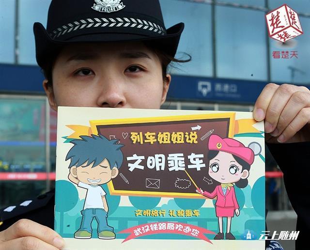 武汉铁路民警会同武汉客运段“高铁动妹”们,在武汉火车站和高铁上,利用自制的宣传板、文明乘车卡片等,结合乘车常识开展高铁禁烟和文明乘车宣传,受到广大旅客的理解和认可。