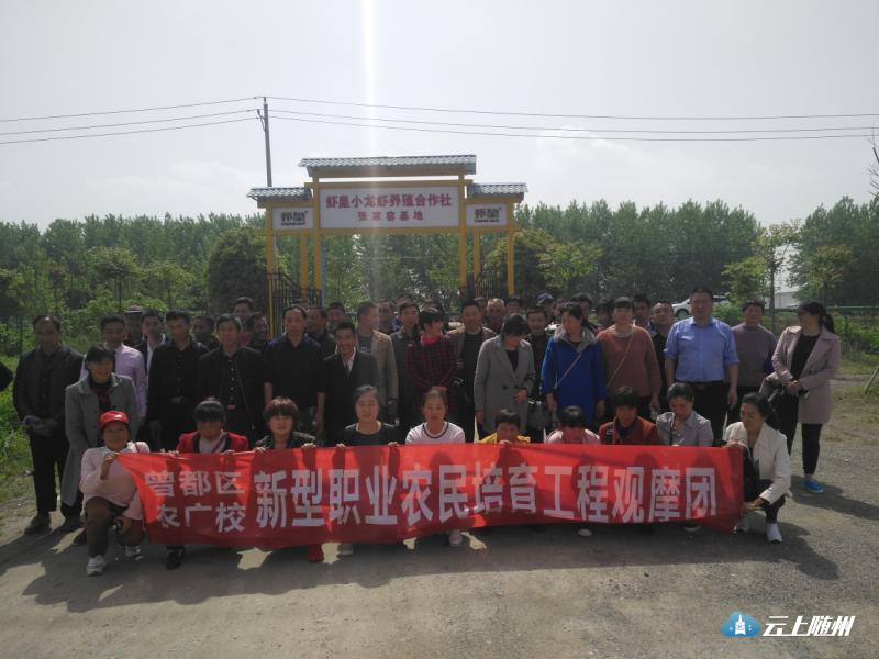 4月17至18日,天气晴朗,曾都区农广校再次组织2017年度稻田综合种养及电子商务培训班50余名职业农民赴潜江、武汉参观实训。4月17日,大家来到位于潜江市虾皇小龙虾养殖合作社张家窑基地,特邀请潜江市农广校水产专家苏运河介绍了该基地的养殖管理特点。并在教室为农民进行了稻虾共作技术讲座。