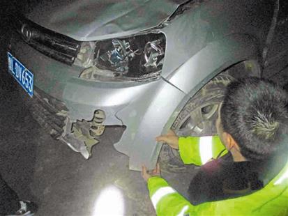 交警查看肇事车辆