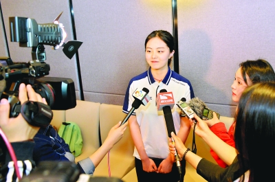 武汉军运会骨干志愿者代表王政25日在军运会志愿者报名系统启动活动现场接受记者采访。24岁的她来自武汉纺织大学马克思主义学院,是一名在读研究生,曾参加省运会和武汉马拉松志愿服务