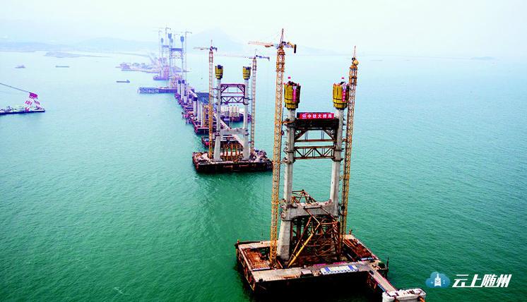 4月26日11时,随着鼓屿门水道桥南侧主塔最后一节混凝土浇筑完成,平潭海峡公铁大桥首个航道桥主塔成功封顶(如图),标志着我国首座公铁两用跨海峡大桥建设取得重大突破性进展。