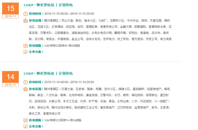 通知|11月8日至15日随州城区停电公告