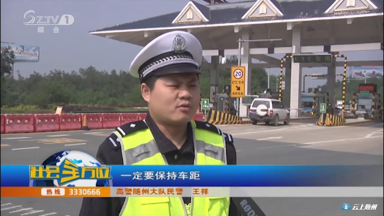 【采访】高警随州大队民警 王祥:高速公路在免费通行期间,路面车流量较大,大家驾驶车辆的时候,一定要保持车距,在遇到前方紧急情况的时候,一定要有序排队通行,切勿占用应急。