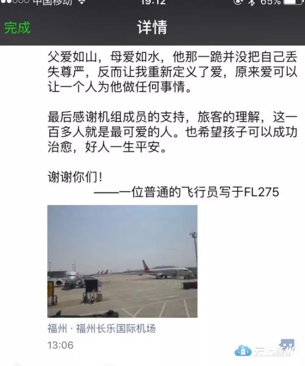 日前,网民@欢乐的云端之上 分享一则网络文章称,一家三口为孩子治病,登机时男子和妻子孩子走散,男子下跪求等等娘俩,飞行员为等乘客延误起飞。随后网传处罚通报称,此次航班飞行员董某被无限期停飞。文章打动许多网友,引起轰动。
