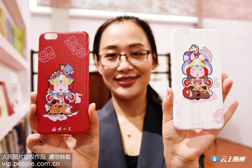 2016年10月20日,浙江省杭州市,国家博物馆的工作人员在展示利用唐代武士形象制作的手机壳。(龙巍/人民图片)