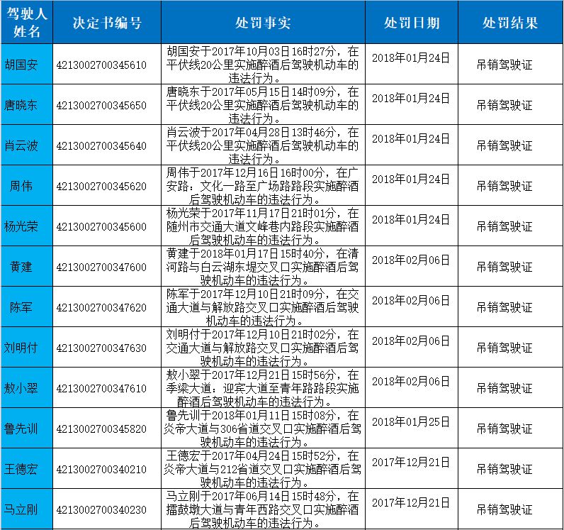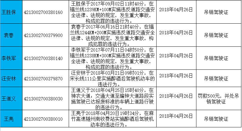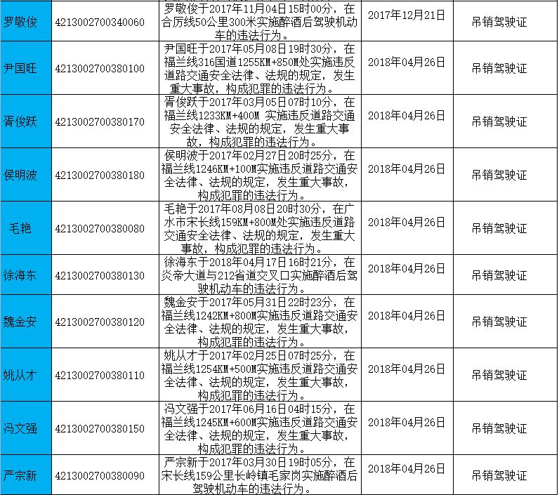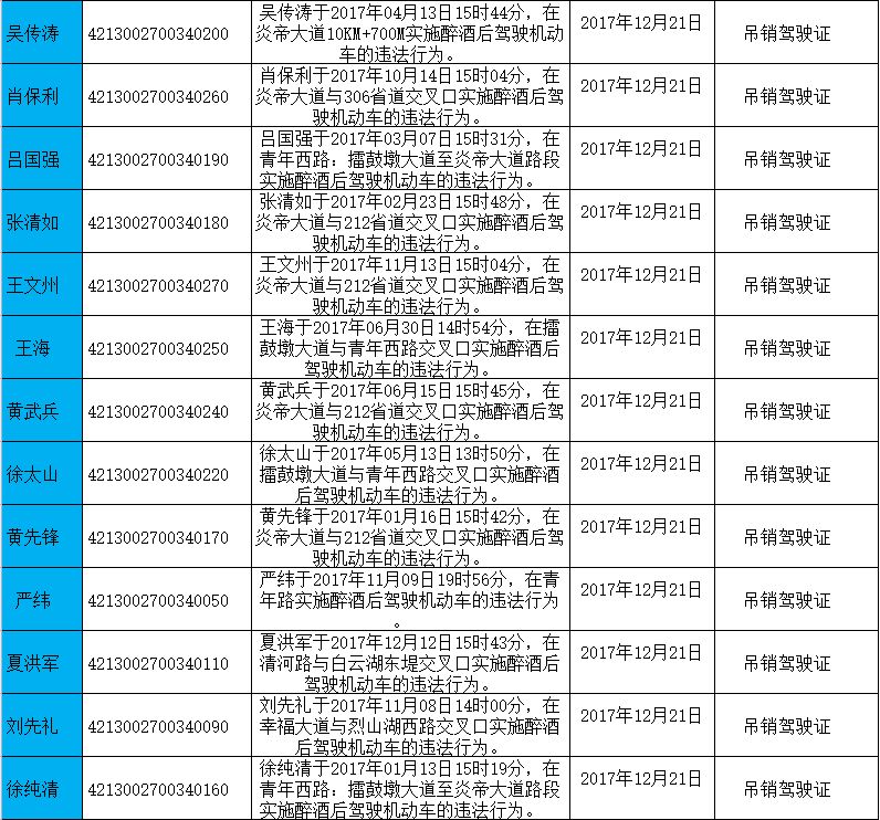 驾驶证吊销名单