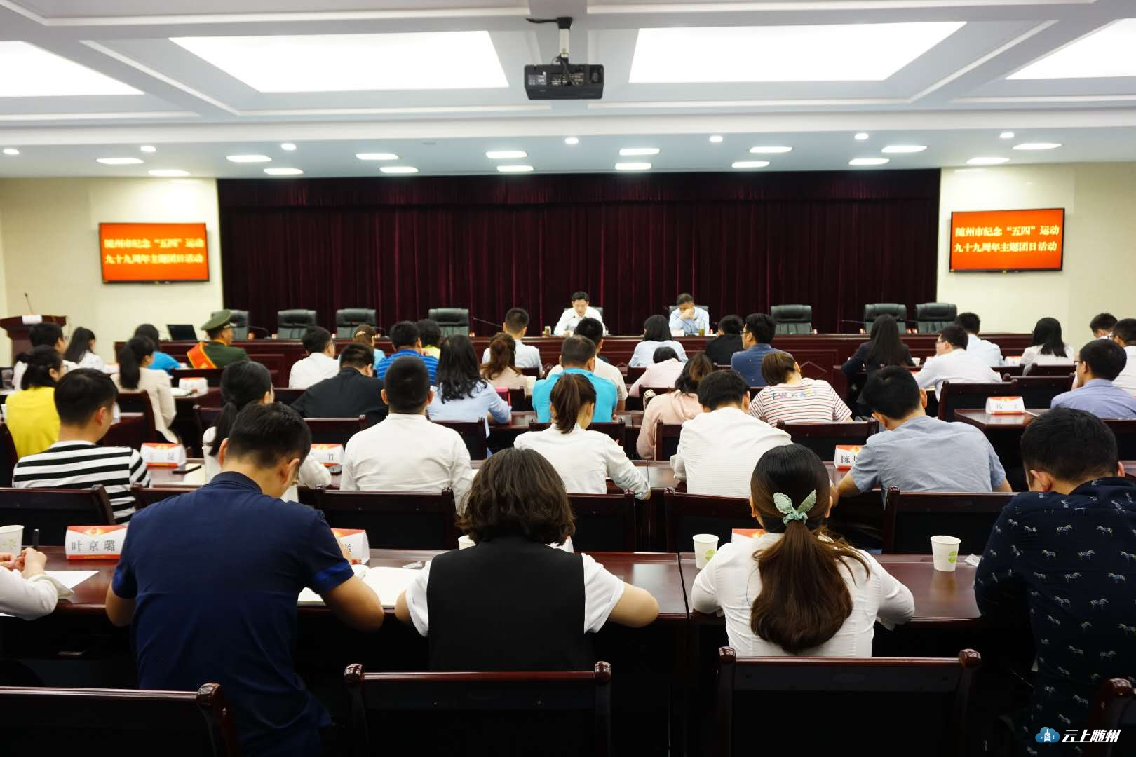 今天,我市举办纪念五四运动九十九周年主题团日活动,市委常委,组织部长甘国栋勉励广大青年坚定理想信念在不忘初心跟党走上当好先锋,勇于创新创业,在服务中心大局上当好先锋,引领文明新风,在弘扬时代精神上当好先锋。在主题团日活动上,消防战士蔡伟,广水旗峰电子商务有限公司总经理程慧,曾都区白云湖学校中队辅导员张欢等优秀青年典型代表作宣讲。