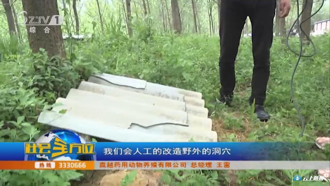 【采访】赢越药用动物养殖有限公司 总经理 王雷:这边我们现在规划了一千多平的生态散养区,主要是模仿原生态的野外的生长环境,让它在这里面活动觅食。(这样的散养方式有什么好处?)这种是原生态的,没有任何的干扰,我们就每天定时给它们投点水和食物就可以了,没有去人为的干扰它们,让它们在野生的条件下自然的生长繁殖。