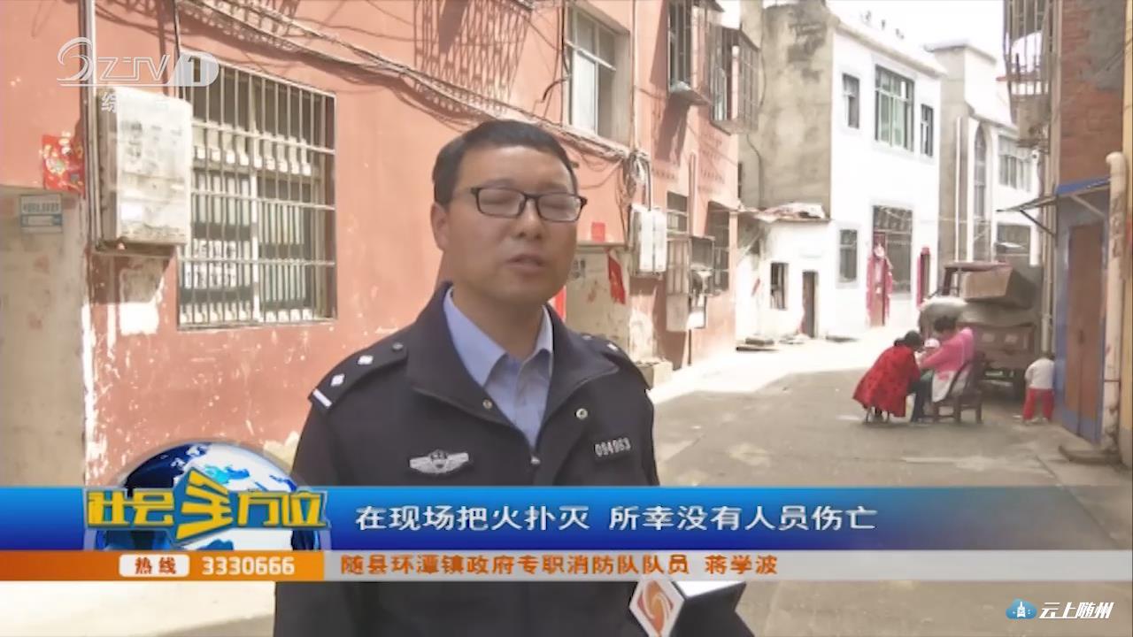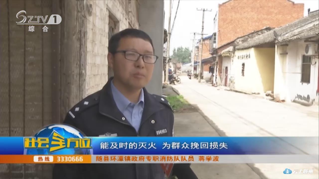 【采访】随县环潭镇政府专职消防队队员 蒋学波:这里离我们所比较近,我们很快赶到现场,只用了15分钟,在现场把火扑灭,所幸没有人员伤亡,火势也没有蔓延。