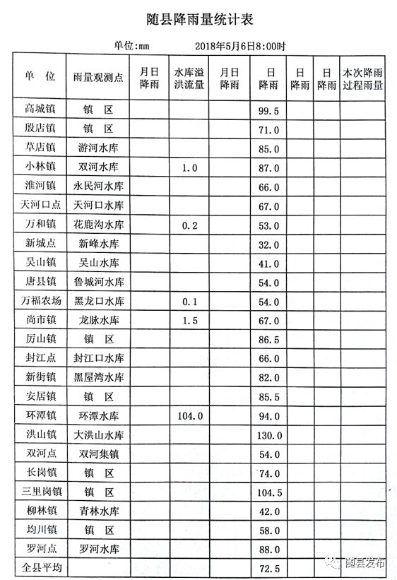 殷店镇翻板闸已翻板,下泻流量已达200m³/s且仍在增大;天河口水库截止今日8时降雨量为67.4毫米,较昨日水位上涨20厘米,库容增加82万方……