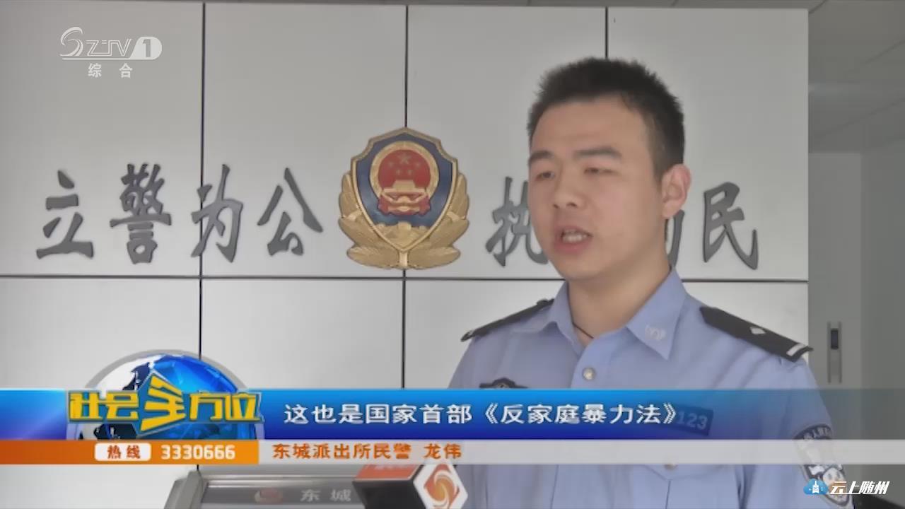 (采访:东城派出所民警龙伟)这也是国家首部《反家庭暴力法》正式实施以来我们办理的首例家庭暴力刑事案件,希望广大市民一定要自觉增强学法守法意识,争做孝老爱亲、履行家庭义务的好公民。