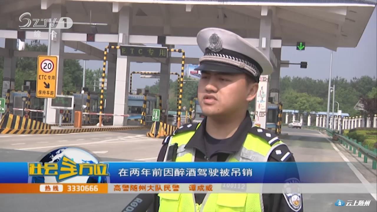 【采访】高警随州大队民警 谭成威:我们通过公安网查询,发现该身份证号照片与他长相极其不相符,驾驶员谎称这是他几年前的照片,现在有所变化,经过我们再三询问以及公安网的查询,发现驾驶员驾驶证在两年前因醉酒驾驶被吊销,他是冒用的他朋友的驾驶证。