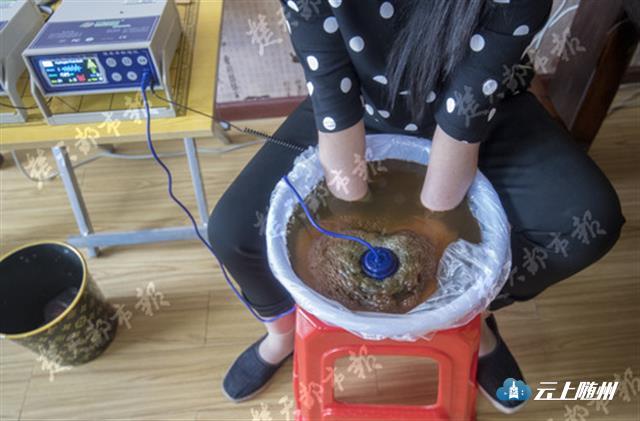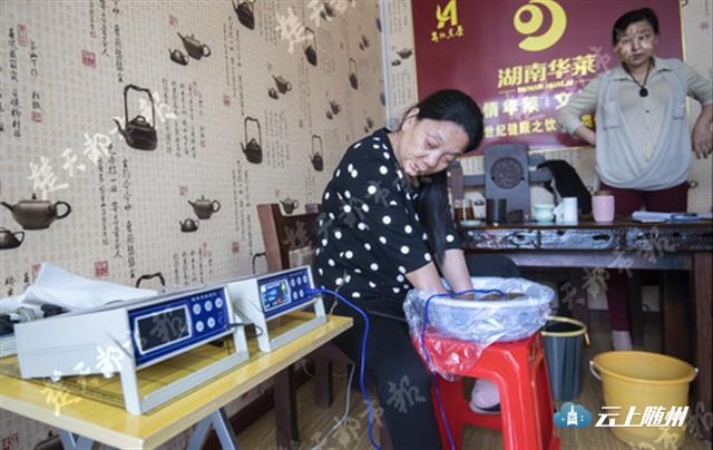 8日下午3时许,楚天都市报来到武昌大道“安化黑茶”门店,一二楼各有10多平方米,是茶楼的装饰和摆设。一楼有四名中年妇女,进门左边的桌子上,摆放了两台豫本草衡通仪。记者佯装要体验洗脚,一名中年女子听出记者是外地口音,警惕地询问是谁介绍的,怎么知道这里的。记者流利回答后,该女子随后端来一盆水。迅速地将门关上,生怕外面的人看到了店里的情况。
