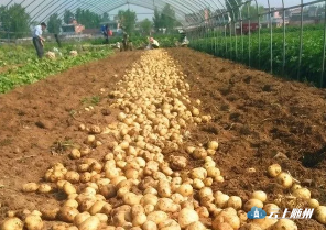 “每蔸产3至5个、重量1至1.3斤。”近日,位于唐县镇的随县农业科技示范园的大棚马铃薯正式起收,一兜兜硕大的马铃薯铺满田垄。经技术负责人余功亮测算,大棚马铃薯亩产5000斤,当前销售价每斤1.2元,亩产值约6000元,其综合效益比一般地膜栽培大幅提高。