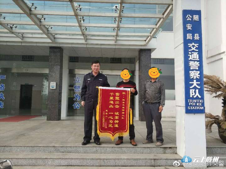 5月7日一大早,随县唐县镇居民肖某家属将一面印有“雷霆出击破案神速 千里追凶一心为民”的锦旗送至随县公安局交警大队事故中队,对大队民警坚持不懈,千里奔袭侦破交通肇事逃逸案,为他们在事故中逝去的亲人讨回公道表示感谢。面对群众的肯定,专案民警感到由衷的欣慰。