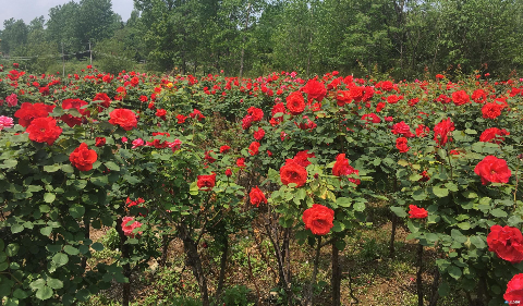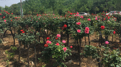 作为一种新的园艺品种,树状月季目前在市场上很受欢迎,不仅成为了大型工程中园林苗木的首选之一,也备受家庭园艺爱好者的青睐。而最初选择来培育这种月季花,还是园主郭耀文他父母的一次偶遇。