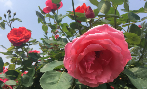 据园主郭耀文介绍,这种观赏盆景叫月季树,是当今园艺界的一个新型的技术。采用冠幅匀称,直立性较好的野蔷薇作为嫁接母本,然后把普通的地栽月季嫁接到母本上面,形成了造型高贵典雅,层次分明,冠幅匀称的大型的观赏苗木。