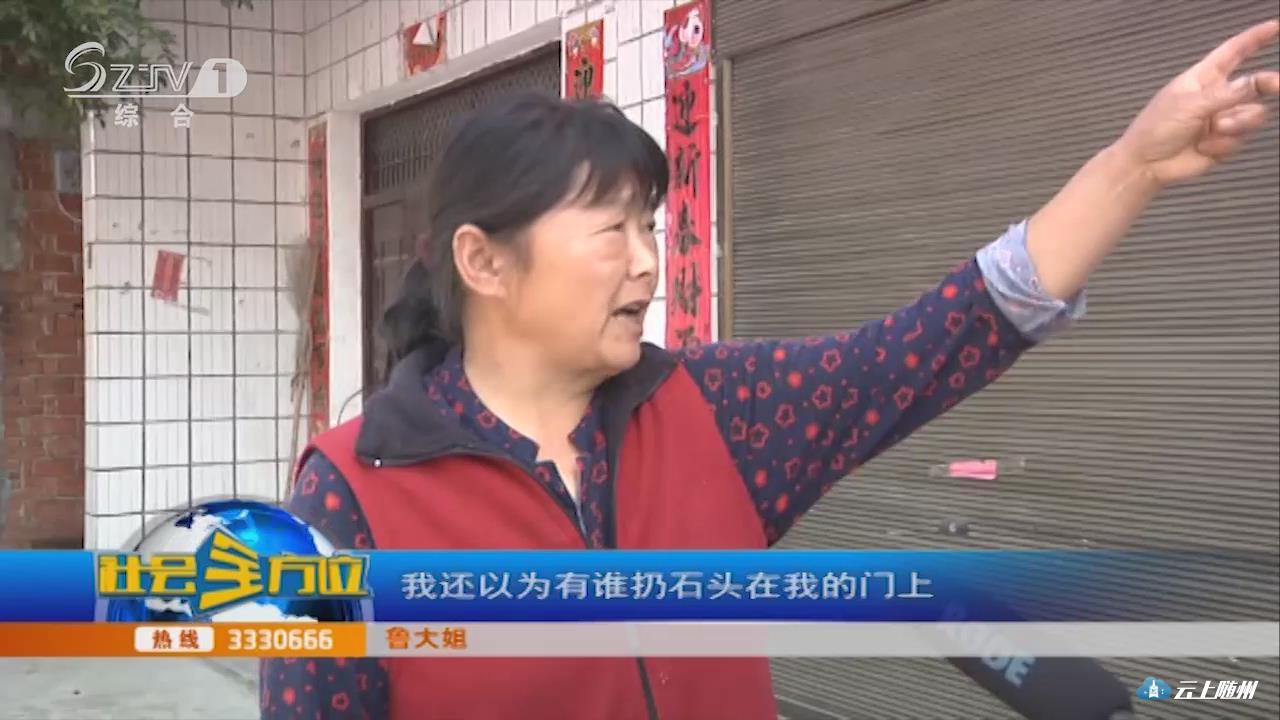【采访】鲁大姐:那一天晚上我在厨房做饭,正在洗碗,我还以为有谁扔石头在我的门上,第二天一看,铝合金上面的。镜子破了。