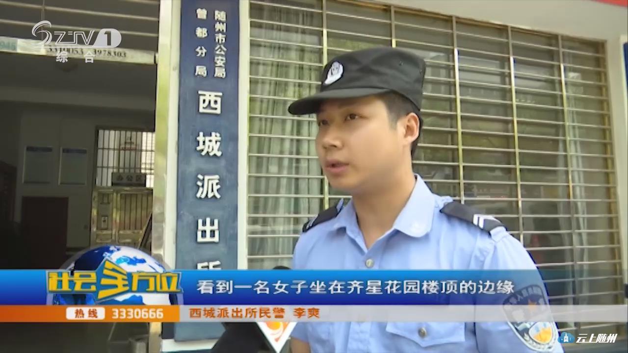 【采访】西城派出所民警 李爽:我们去到现场之后,看到一名女子坐在齐星花园楼顶的边缘,两条腿都放在外面,当时她的情绪很激动。