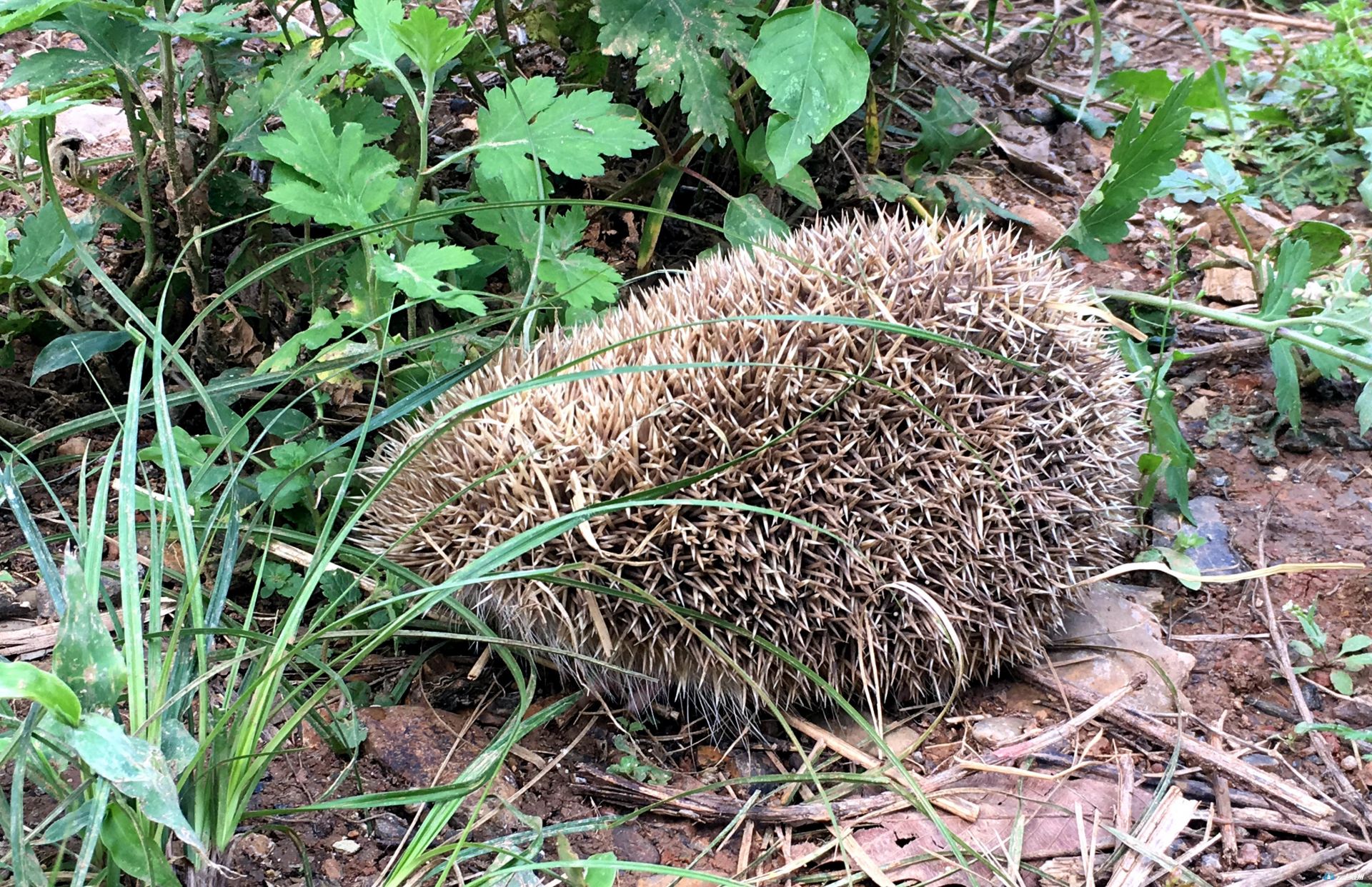 利用瓦片盖子人工改造的野外洞穴,遮挡起来,既可以防止雨季雨水淋进去,把刺猬弄潮湿了,还有可以起到一个遮阴的效果,同时也给刺猬创造了一个比较安静的休息环境。