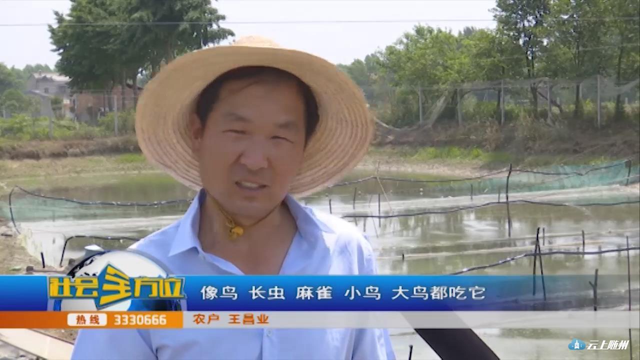 【采访】农户王昌业:防逃围网挺麻烦的,再一个水质要好,水质不好,它会发病。它还会逃,天敌也会叼它,像鸟,长虫,麻雀,小鸟,大鸟都吃它,也挺麻烦的,(在防护这块还需要很多的工作)。