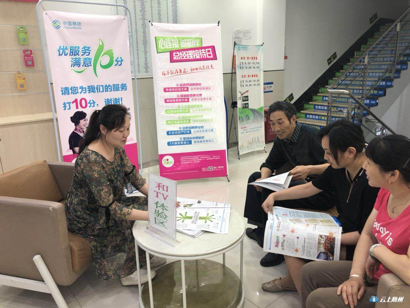在5月17日世界电信日到来之际,随州移动分公司举办客户接待日活动,部门经理在营业厅亲自为用户办理业务,与用户开展座谈, 邀请消费者当面提意见,与社会公众开展现场交流。