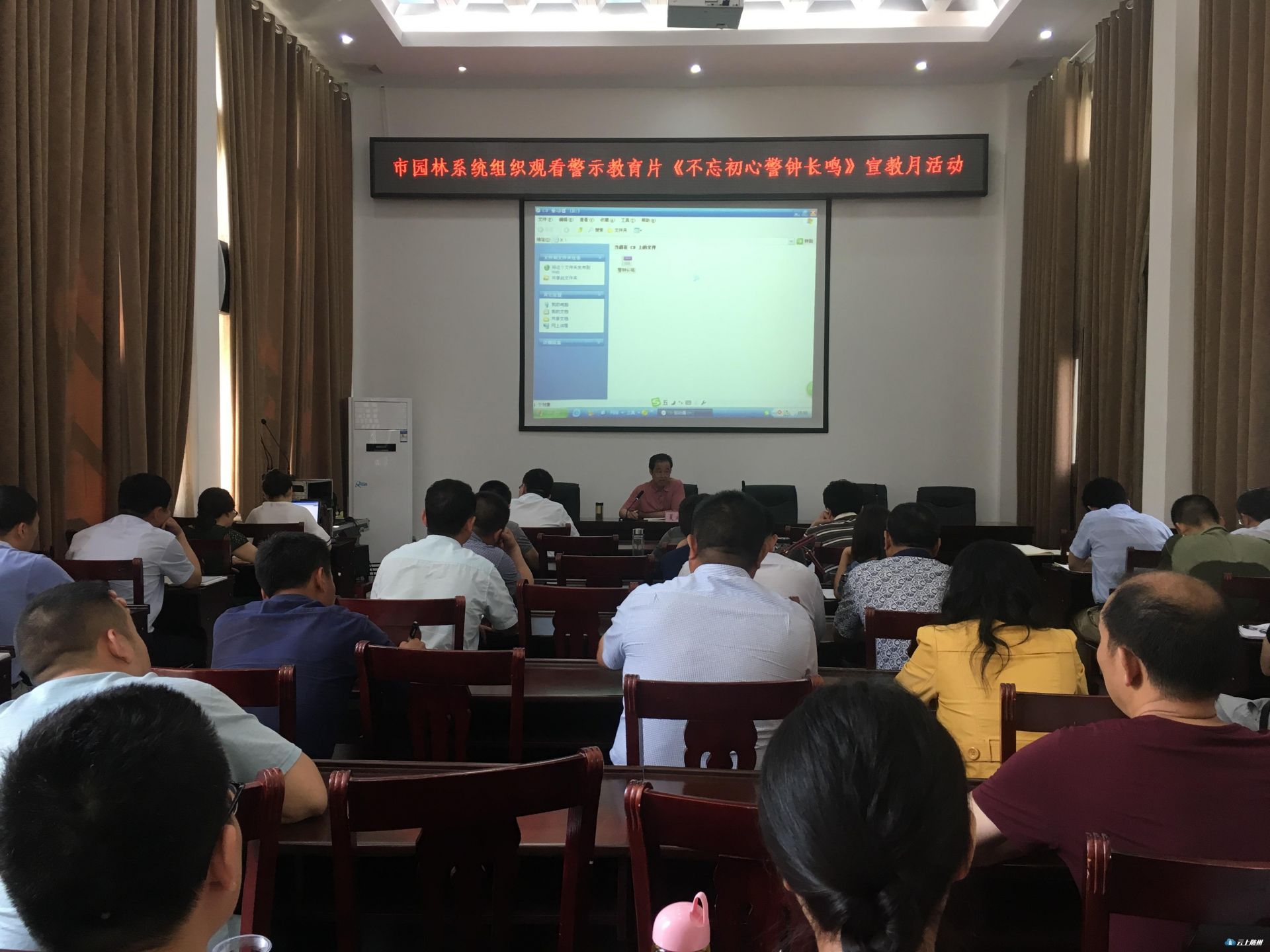 5月17日上午,随州市园林局全体党员干部齐聚局109会议室,观看警示教育片《不忘初心警钟长鸣》,扎实推进第十九个党风廉政建设宣传教育月活动。