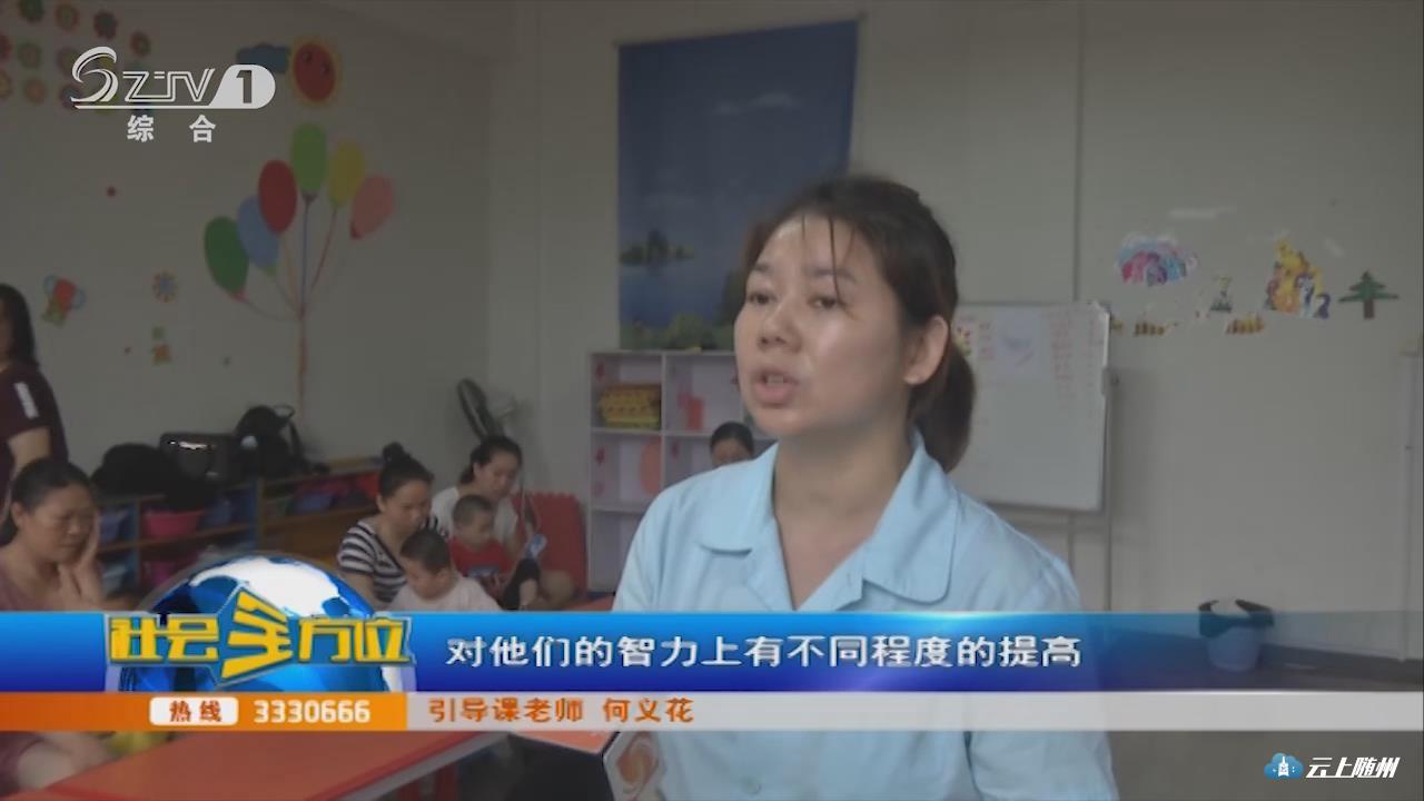 (采访:引导课老师 何义花)教小孩子们逐步的动作分解,认识我们身体的部位,通过学习,对他们的智力上有不同程度的提高,刚开始来,他们有的是自闭症,目光不对视,现在他会跟着老师的引导,会自主的跟你有目光的对视,还有一些唐氏综合症的儿童,跟你一起有互动了。