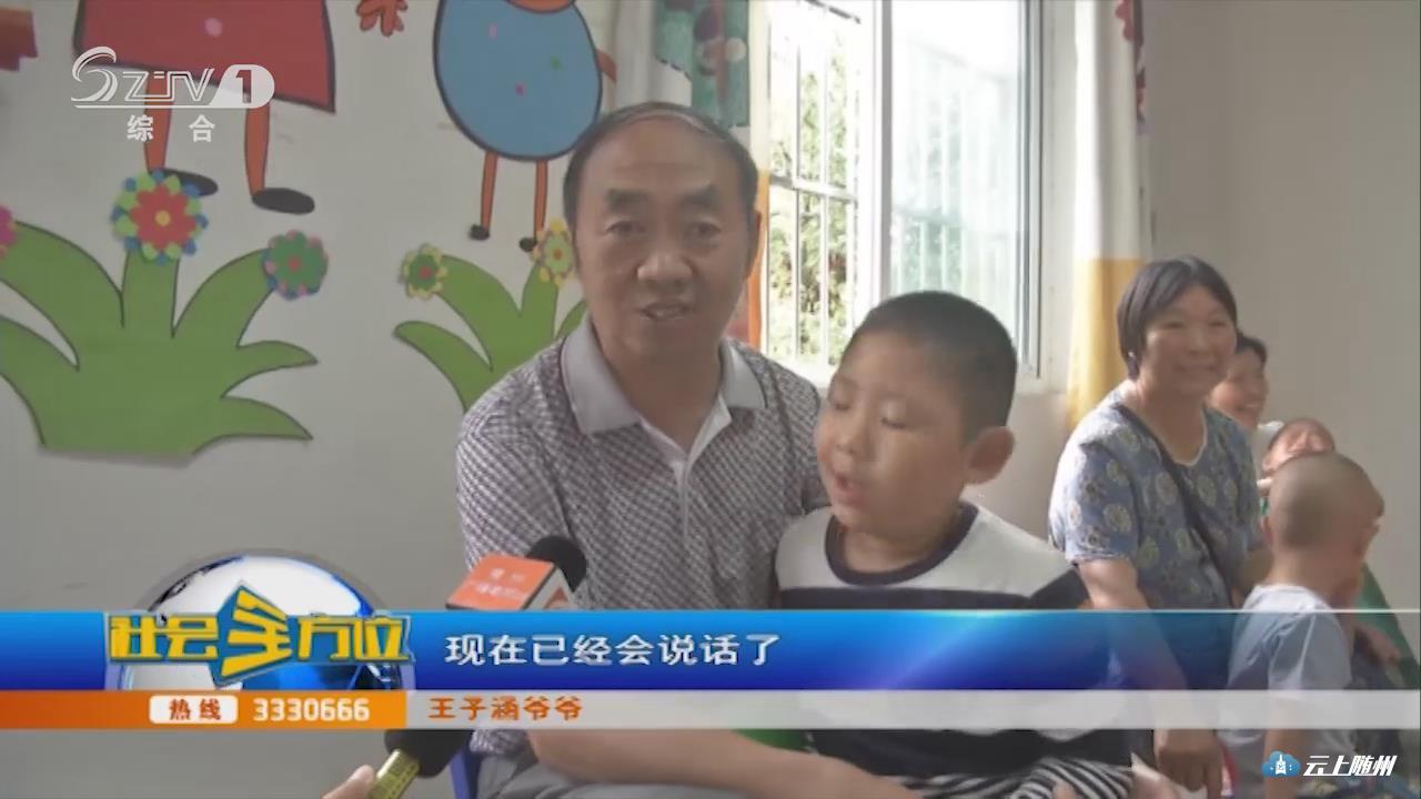 (采访:王子涵爷爷)已经训练两三年时间了,以前根本不说话,现在已经会说话了,可以跟大人交流了,你觉得这个训练是很有帮助的是吧?有,很有帮助,现在是自费,我们还是继续在这里学习。