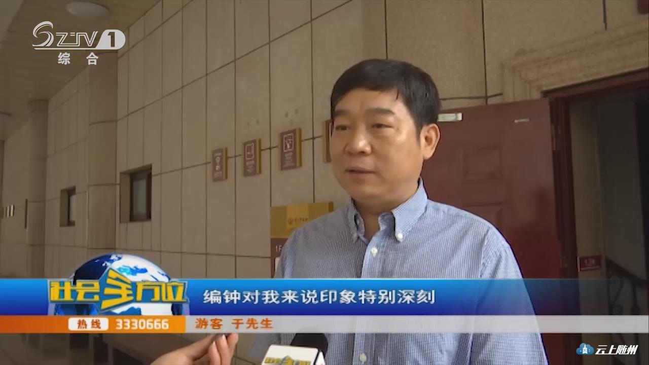 【采访】游客于先生:朋友介绍过来的,我第一次来到咱们的博物馆,学习到随州的历史文化,对我感触颇深,我知道随州出土的好多文物,包括炎帝,我知道炎帝是咱们这儿的,但不知道还有曾国、随国的来历,这次对我来说学习很有帮助。编钟对我来说印象特别深刻,因为原来好像是在中央电视台播出过,我很好奇,这次我见到了真实的东西,对我来说感触很深。