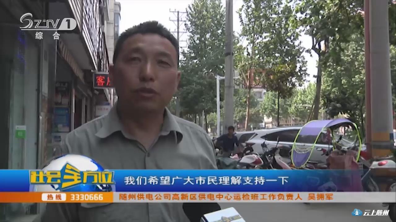 【采访】随州供电公司高新区供电中心运检班工作负责人 吴拥军 :需要市民理解这个工作,砍树实际上也很辛苦,包括园林部门,供电部门,因为天气比较炎热,树上的灰尘比较多,很呛人,工人们都是汗流浃背的,皮肤也过敏,我们希望广大市民理解支持一下。