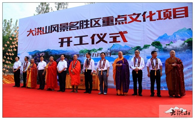 大洪山重点文化项目开工仪式上,蒋星华代表市委、市政府致词。他说,近年来,我市围绕“圣地车都、神韵随州”主战略,着力提升“炎帝故里、编钟之乡、佛教圣地”三大品牌形象,促进了旅游文化产业的持续发展。其中,大洪山风景名胜区高举“佛教名山、养生天堂”大旗,全力构建“中天佛国”,社会关注度不断提高。作为我市全力争创的国家5A级景区,大洪山正成为我市旅游资源中的一张金字招牌。今天开工的以禅修中心为标志的重点文化项目,不仅是大洪山新区的亮点工程,更是弘扬大洪山佛教文化的重要平台,是广大佛教禅修爱好者的精神家园。大洪山风景名胜区要紧密携手弘法寺、鄂旅投公司,完善配套服务,为项目建设提供坚强保障。建设单位要秉承慈恩寺“传世杰作、不可复制”的建设理念,加快禅修中心建设步伐,力争规划设计一步到位,工程质量一丝不苟。市委、市政府将全力支持景区重点文化项目建设,支持将禅修中心打造成集文化传授、旅游观光、修身养性于一体的佛教圣地。