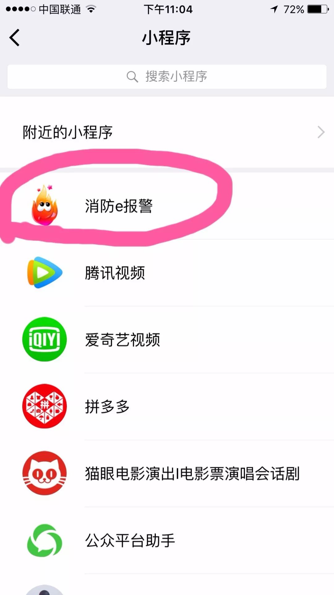 3 点击“消防e报警“进入微信报警页面