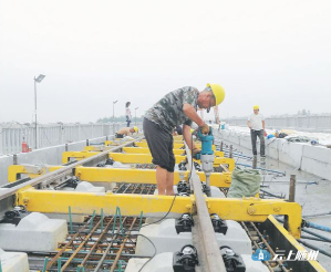 汉十高铁随州段为了全线铺轨定标高,现已完成2公里多的无砟轨道道床板建设,等待轨道安装。左图为已浇筑完毕的无砟轨道道床板,上图为工作人员安装道床板浇筑模板。